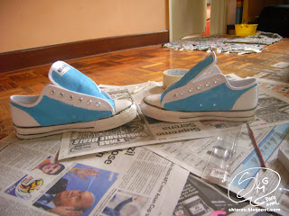Finished pair. Took me half a day, including time spent taking breaks and stuff. It was loads of fun. I sprayed them to keep the paint from coming off but I'm still a little nervous about it. Gotta go buy a new can specially made for fabrics because the one I've got is for paper. Then going to put it through a wash just to be extra careful.