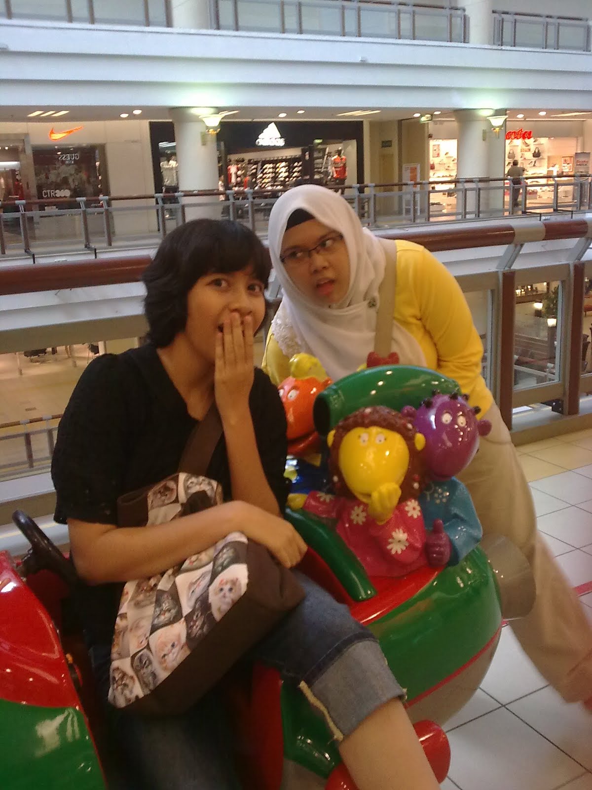 And my Sri Aman lovelies. This was the best picture we could take with all four of us at once. Haha. Sophie, Hannah and Aidil. We spent our time taking pictures with kiddy rides. Or rather, Aidil spent her time taking pictures with kiddy rides.
